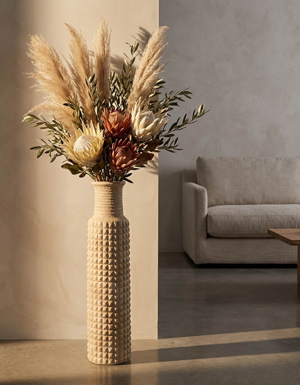 Vaza decorativa, Mauro Ferretti, Sand Outdoor, 28x110 cm, polirasina, bej