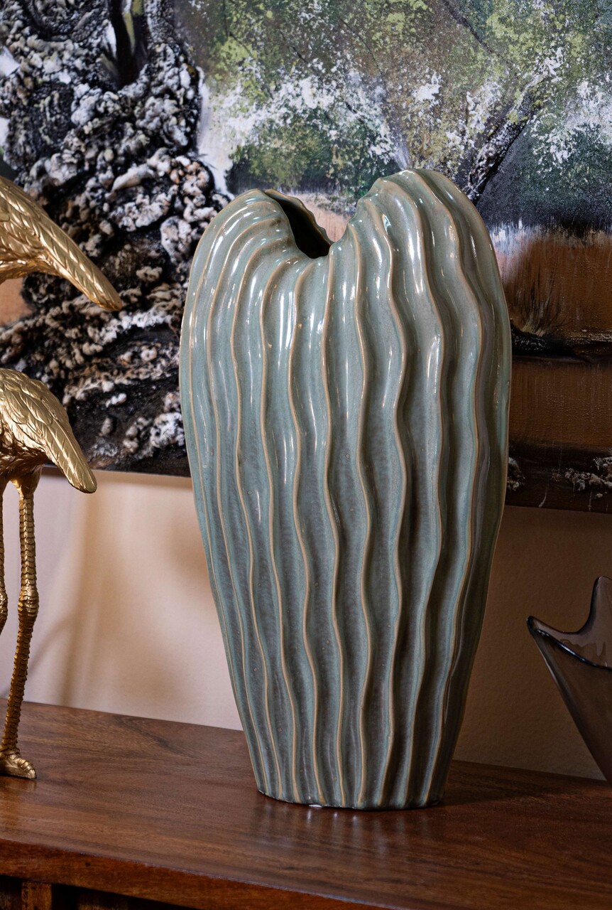 Vaza decorativa Venice, Mauro Ferretti, 27x14x46.5 cm, ceramica, verde