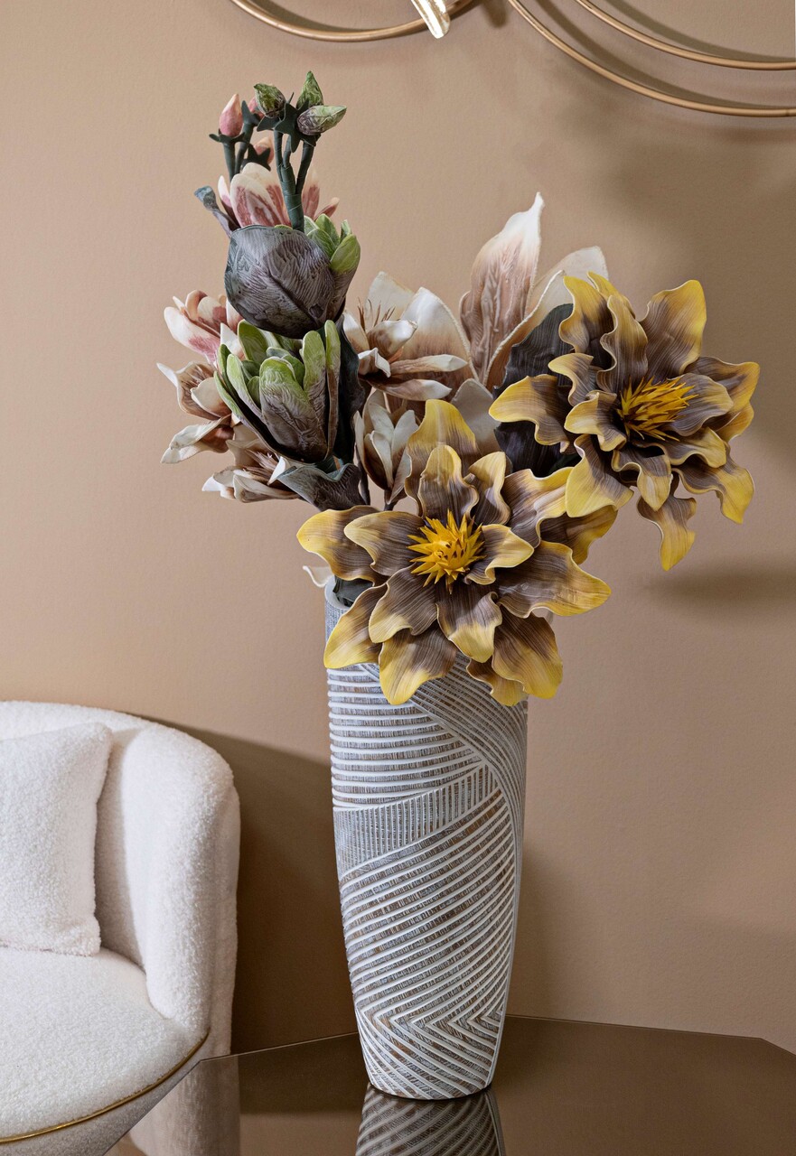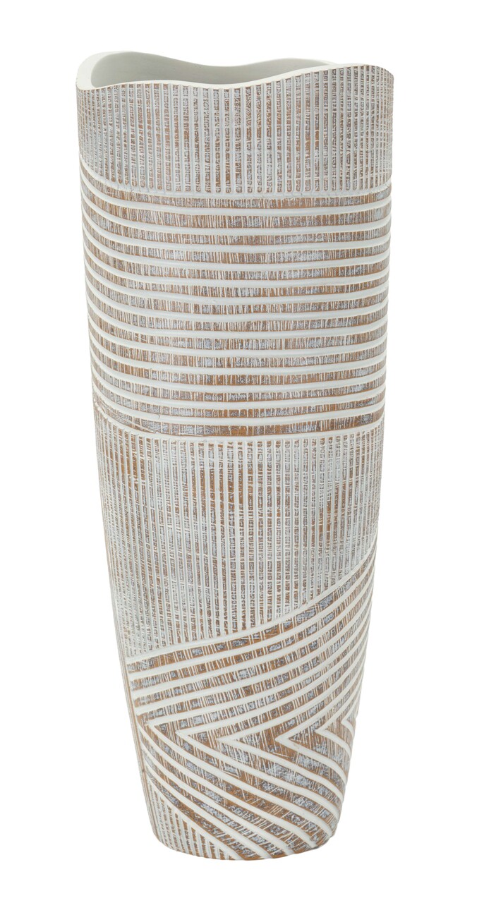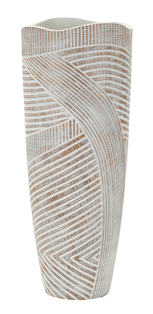 Vaza decorativa Wood Effect, Mauro Ferretti, 18x18x45 cm, polirasina, alb antic
