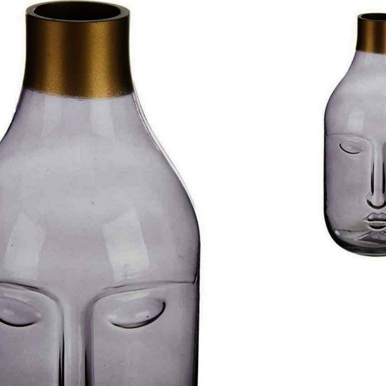 Vaza Face, Gift Decor, 12 x 11 x 24.5 cm, sticla, gri