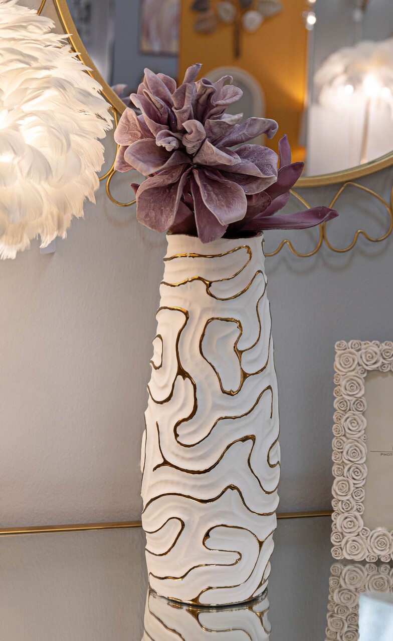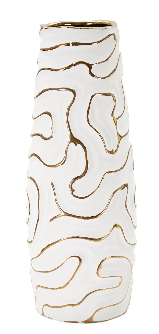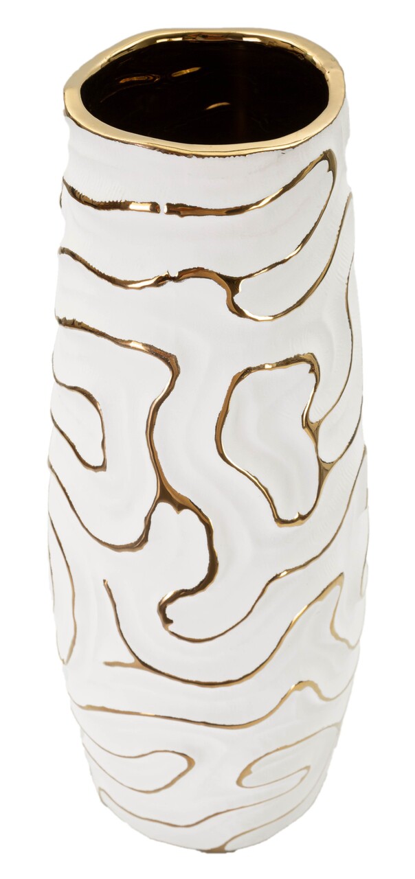 Vaza Lia, Mauro Ferretti, 14.5x14.5x39.5 cm, ceramica, alb/auriu