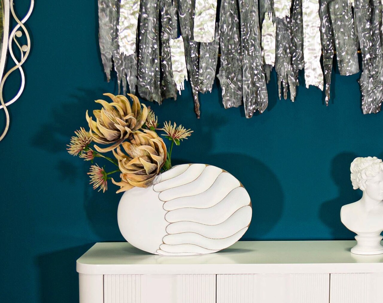 Vaza rotunda cu decoratiuni ondulate in relief.