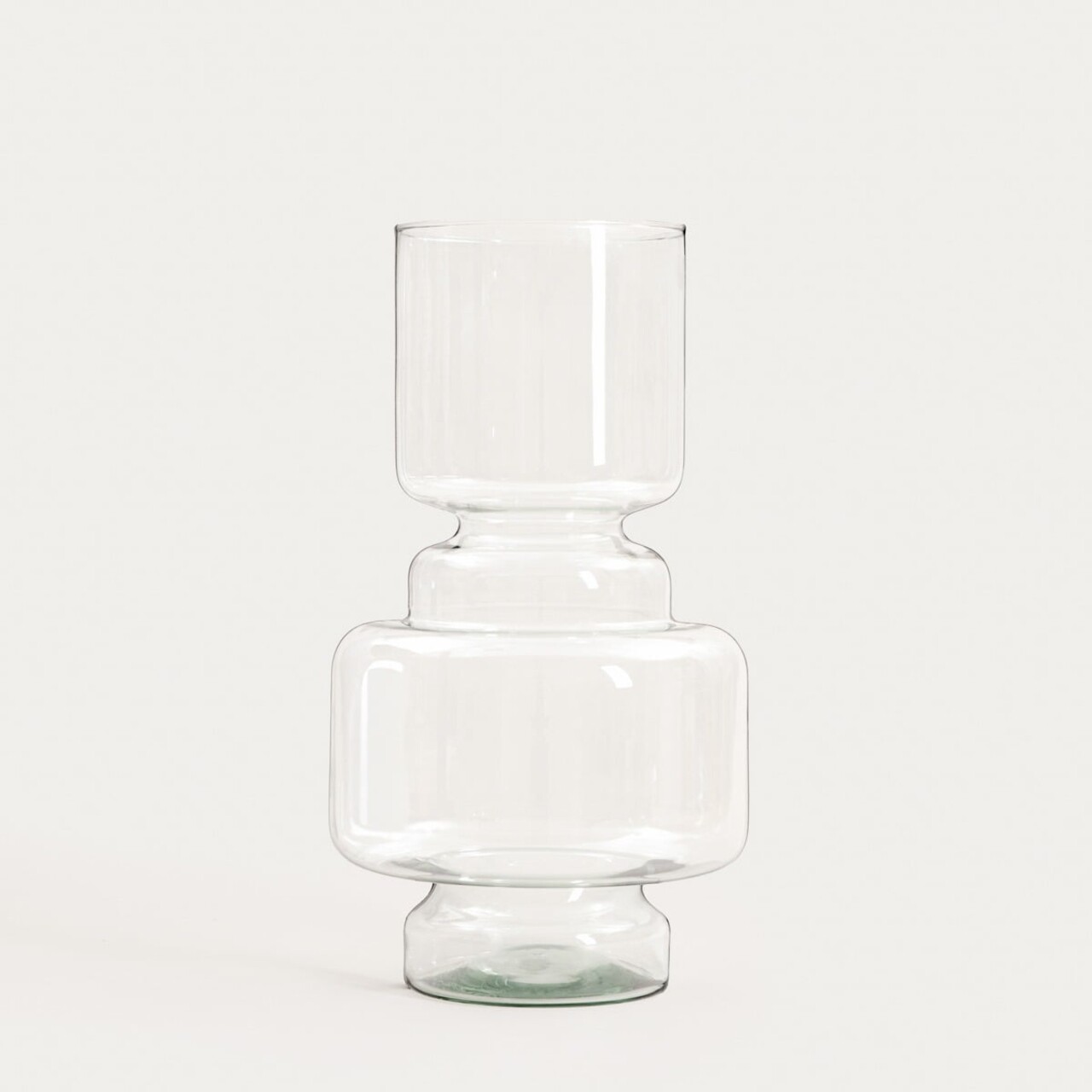 Produsul este fabricat din sticla reciclata care este durabila si estetica. Suprafata transparenta permite expunerea completa a continutului vazei. Se recomanda spalarea manuala.