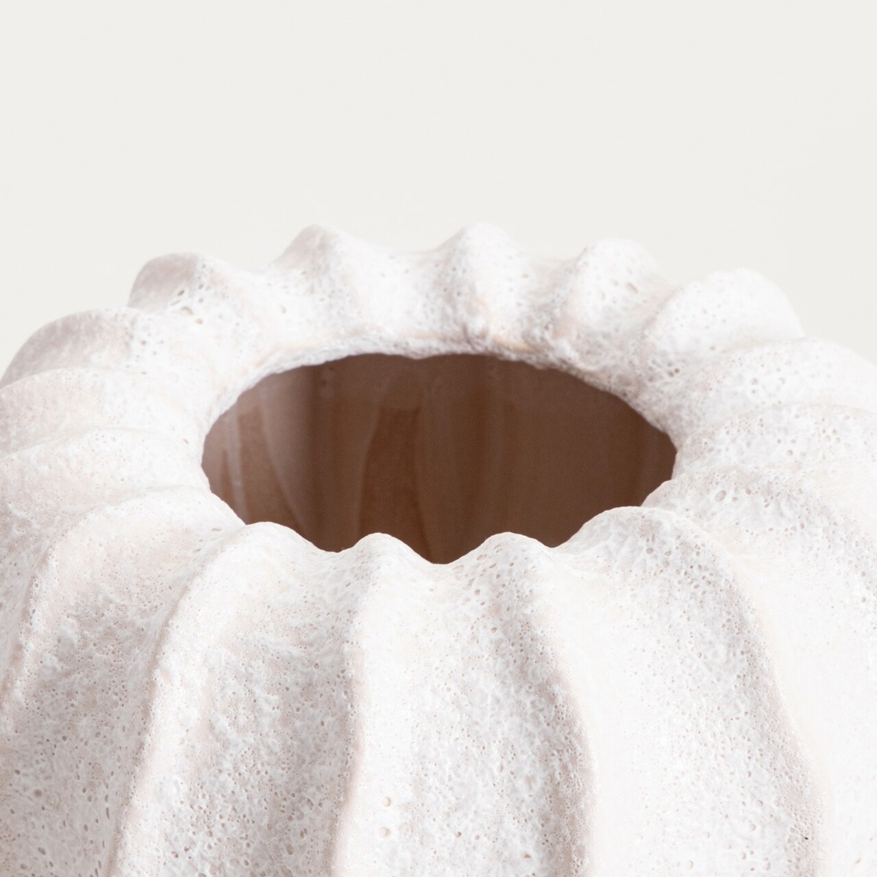 Atrage atentia prin forma sa calma, sculpturala si liniile moi. Vaza are o culoare deschisa si o structura distinctiva. Forma sa aduce un sentiment de armonie si pace in spatiu. O piesa centrala detaliata care se va potrivi bine acolo unde alegerea constienta a accesoriilor si echilibrul estetic sunt esentiale.
