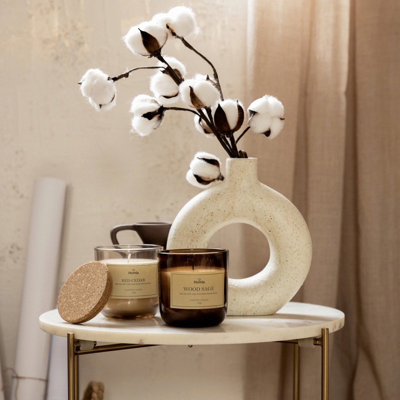 Vaza Novo, Homla, 19x5.5x21 cm, ceramica, crem