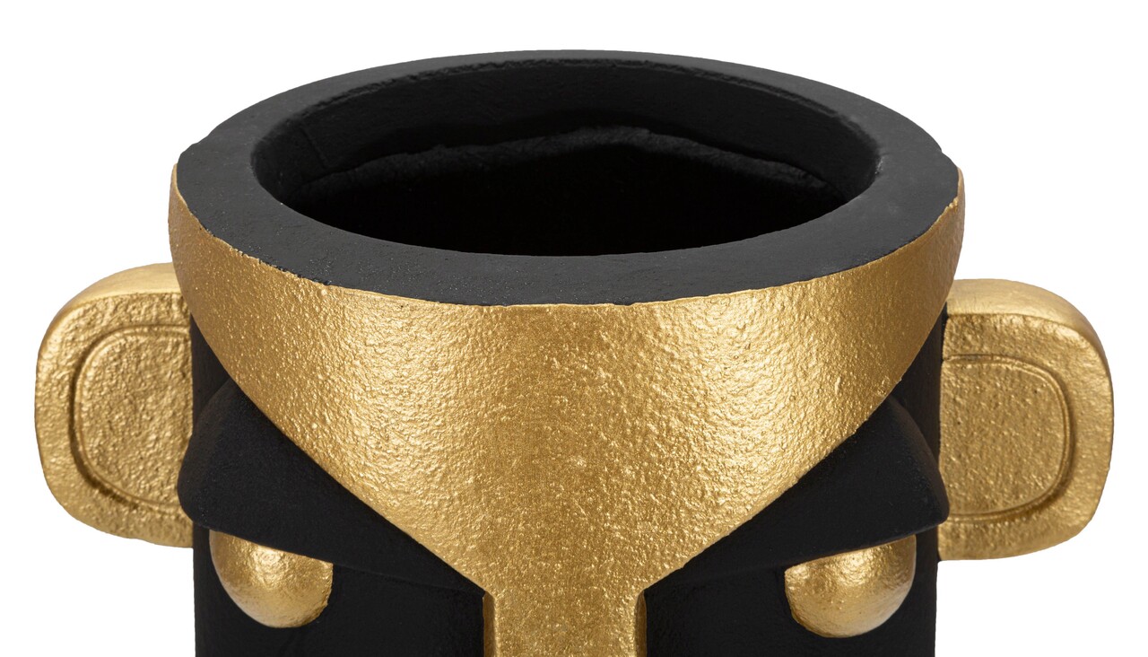 Vaza reprezentand un chip stilizat cu trasaturi aurii elegante inspirate de triburile primitive. Diametru orificiu superior: Ø 17 cm.