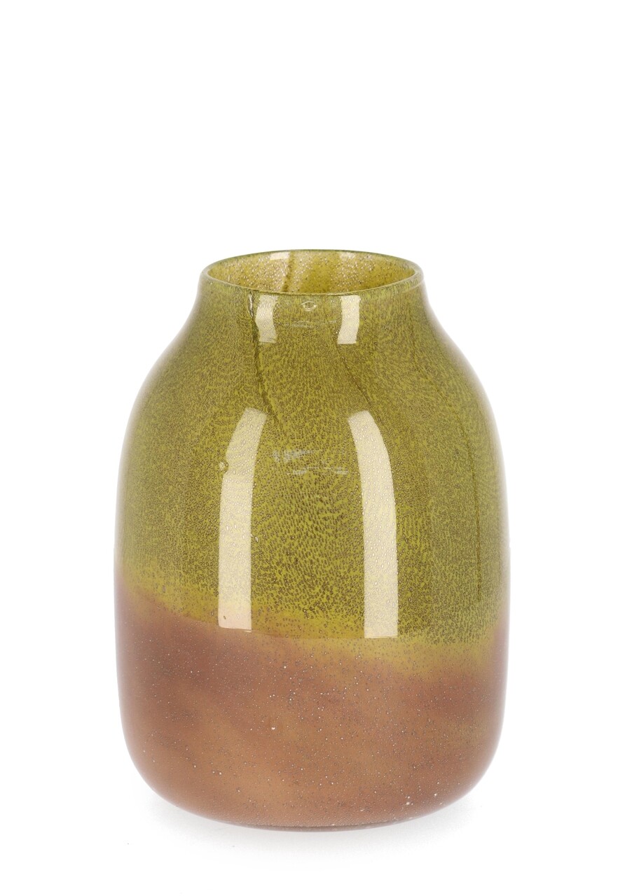 Vaza Venus, Bizzotto, Ø 16.1 x 21.2 cm, sticla, handmade, verde/portocaliu
