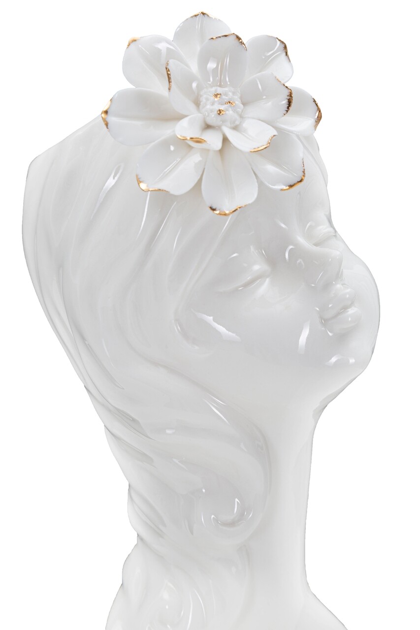 Vaza in forma de bust de fata cu o floare in par. Liniile elegante si sinuoase dau o nota de clasa si rafinament.