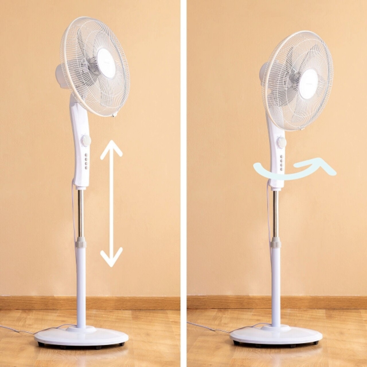Ventilatorul nostru este ideal pentru orice tip de mediu. Cele 5 palete taiate aerodinamic, miscarea oscilanta si unghiul reglabil garanteaza o senzatie reala de racoare, ceea ce il face alegerea perfecta de revigorare in zilele si noptile calduroase.