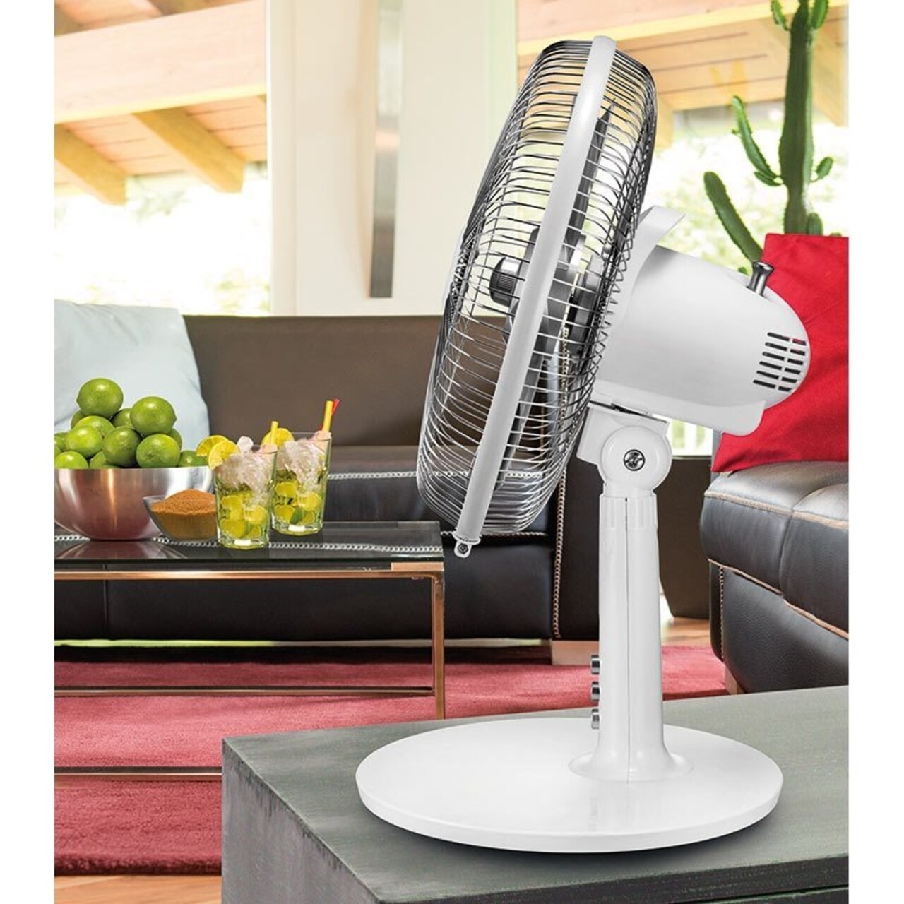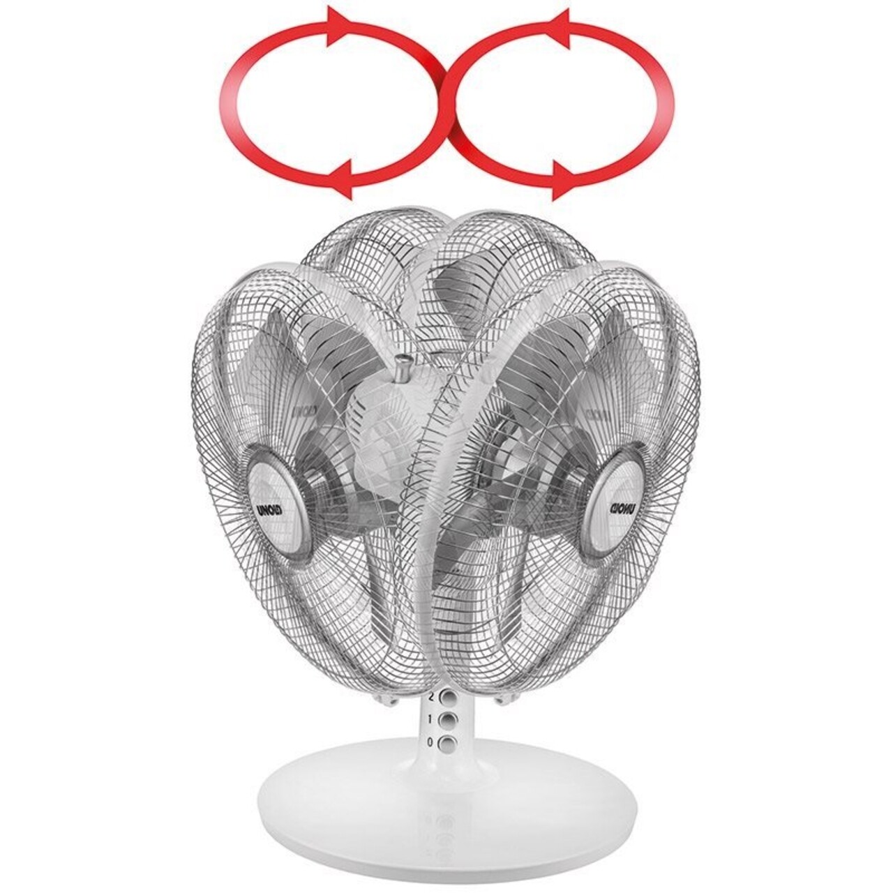 Cele 2 viteze pot fi usor actionate doar printr-o simpla apasare de buton. Cu ajutorul sistemului de oscilatie si a ajustarii unghiului de inclinatie al acestuia, circulatia aerul in incapere se optimizeaza rapid.