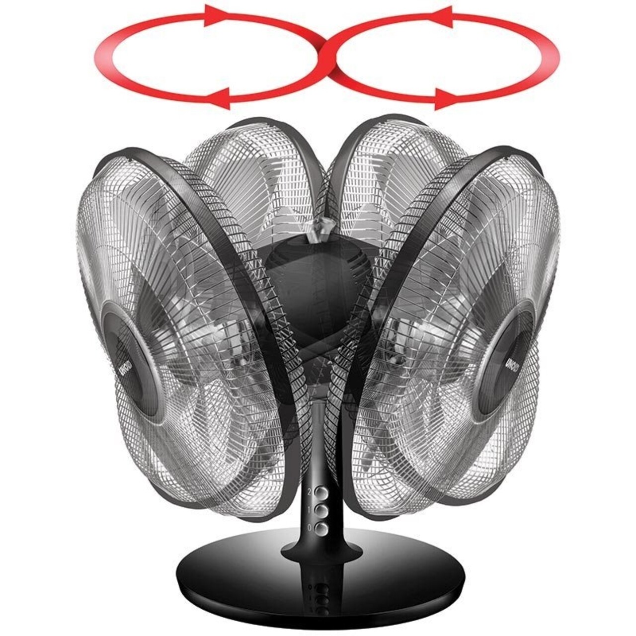 Cele 2 viteze pot fi usor actionate doar printr-o simpla apasare de buton. Cu ajutorul sistemului de oscilatie si a ajustarii unghiului de inclinatie al acestuia, circulatia aerul in incapere se optimizeaza rapid.