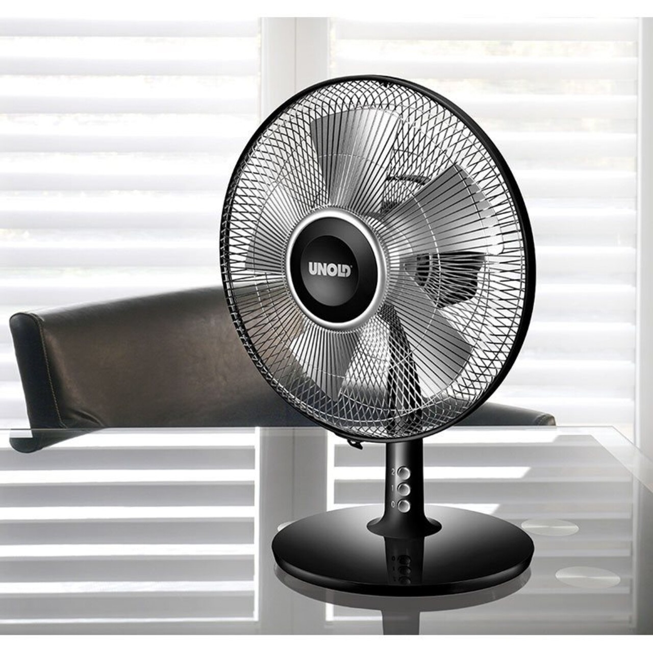 Ventilatorul de masa "Silverline", marca Unold, va ofera o binemeritata gura de aer proaspat in zilele caniculare de vara.