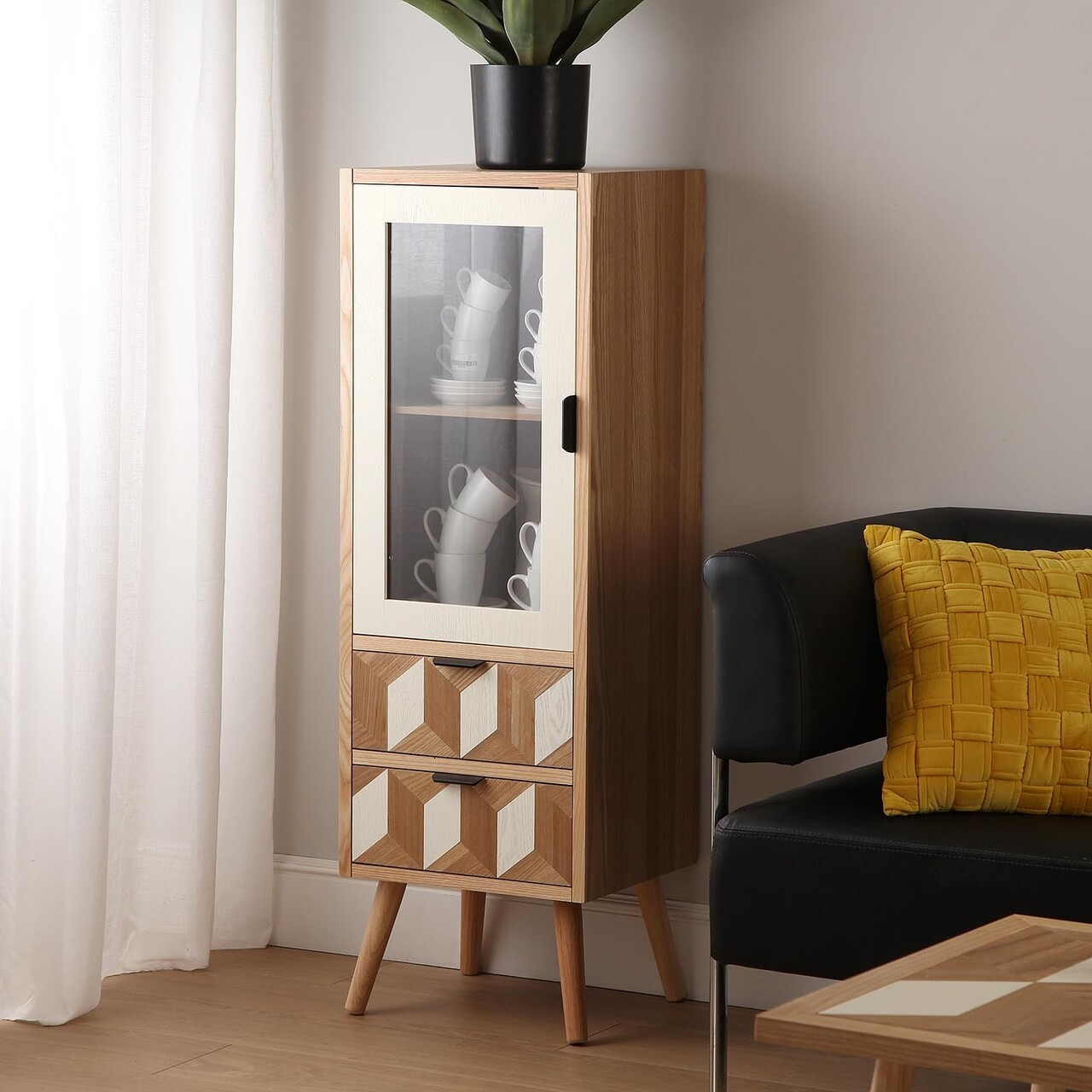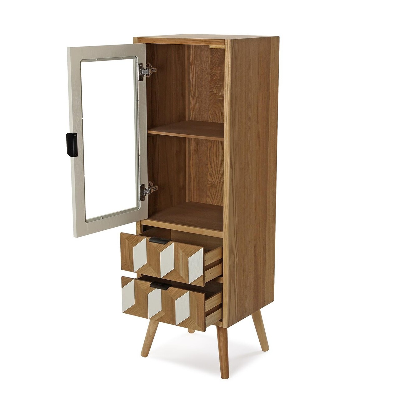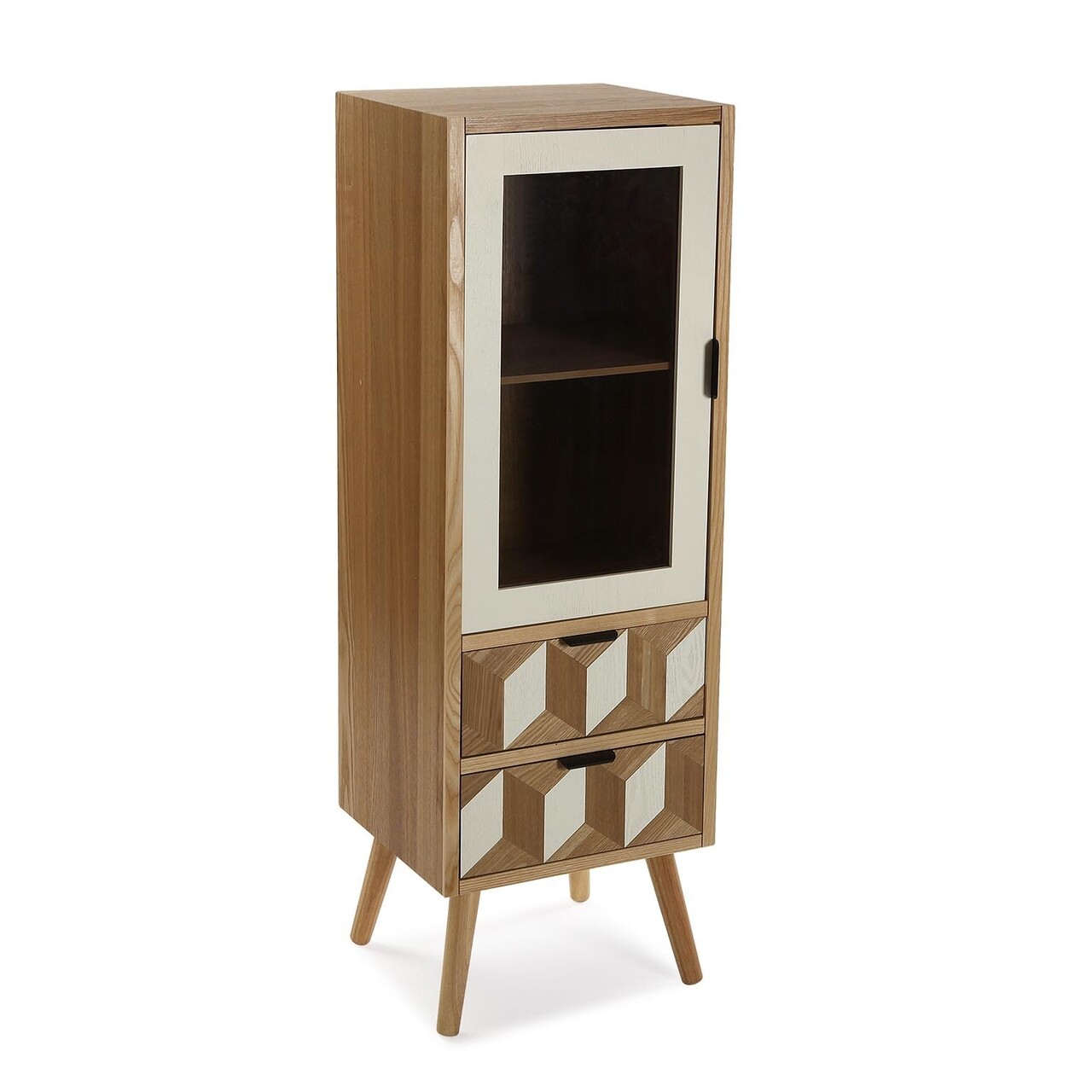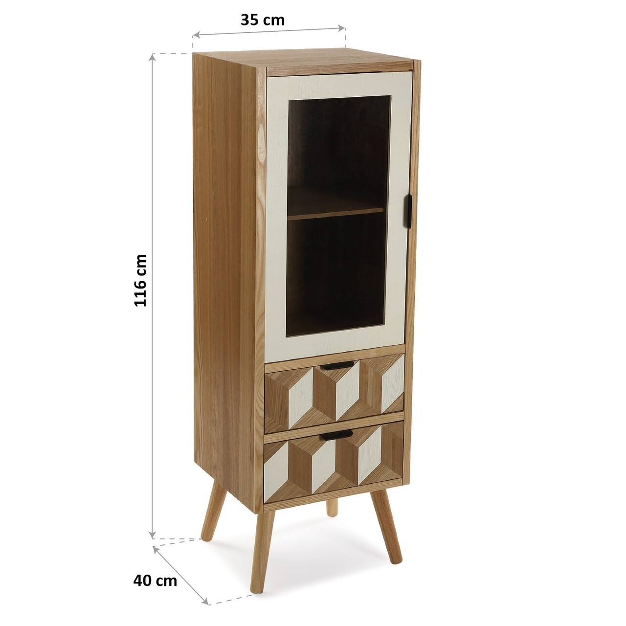 Vitrina cu 2 sertare si 1 usa Chess, Versa, 35 x 40 x 116 cm, lemn de pin/MDF, maro