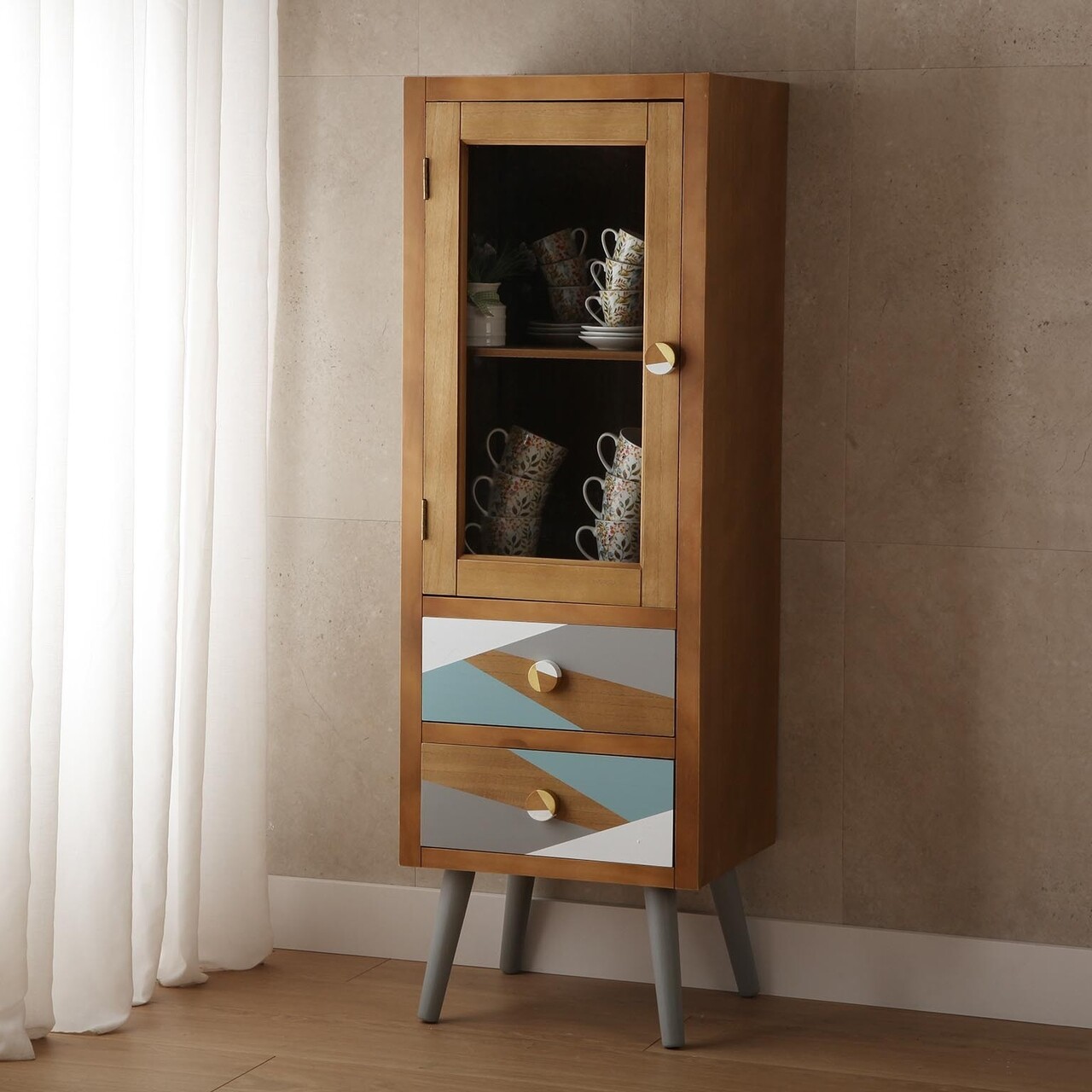 Vitrina cu 2 sertare si 1 usa Willo, Versa, 43 x 33 x 120 cm, lemn de pin/MDF, maro