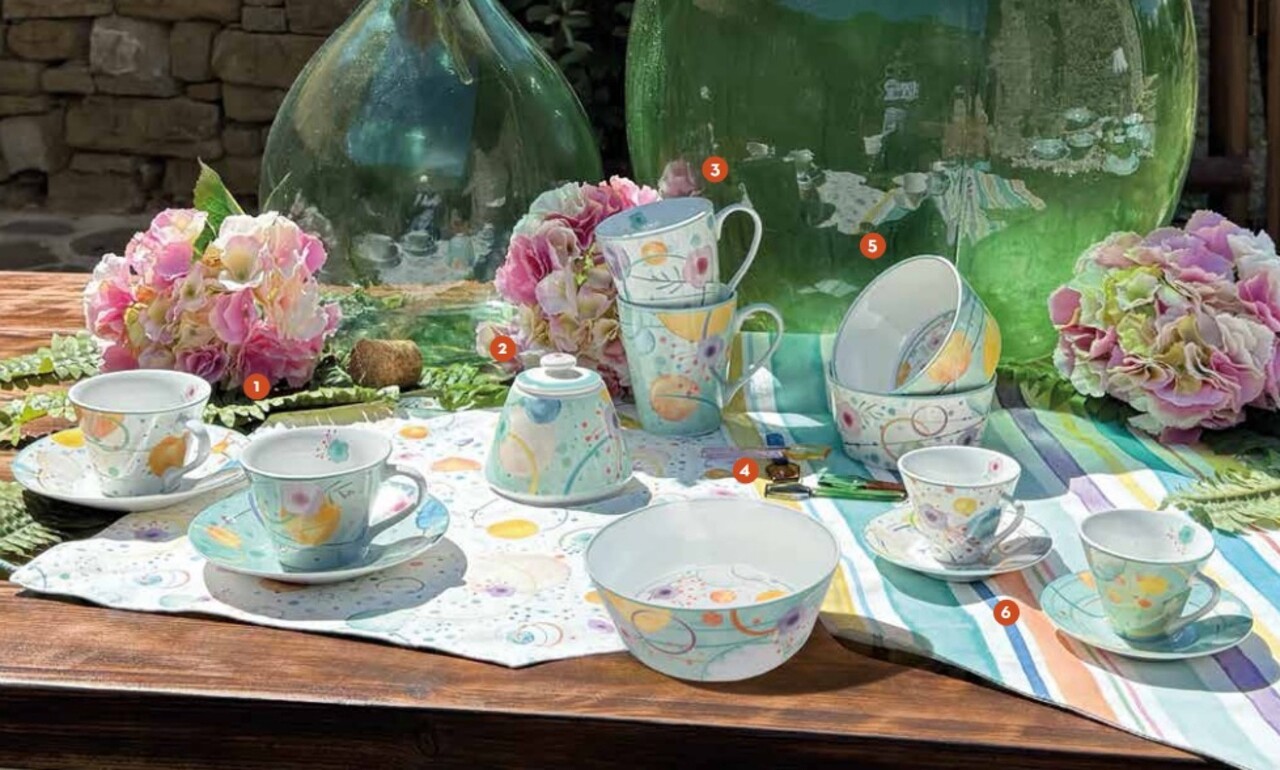 Zaharnita Bollicine completeaza perfect decorul mesei printr-un design proaspat si plin de vitalitate. Decorurile colorate si alternanta armonioasa a formelor aduc un echilibru intre eleganta si dinamism.