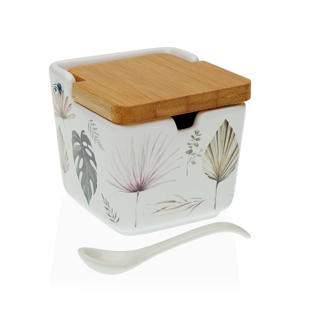 Zaharnita cu capac si lingurita Roxanne, Versa, 8.8 x 8.8 x 10.3 cm, ceramica